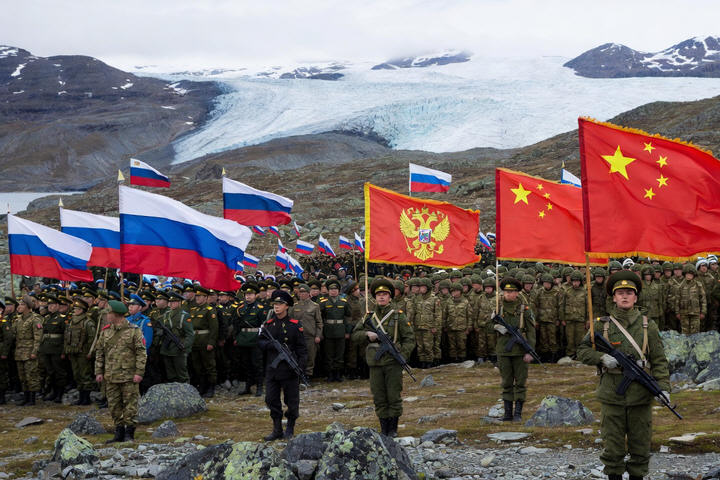Pictured: Russian and Chinese troops in Greenland.