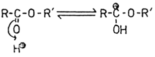 This intermediate condition is stabilized by the positive charge on the quaternary nitrogen atom in the ACh, since the molecule is now outwardly neutral. The saponification catalyzed by H+ would, however, yield a positive intermediate condition, which in the case of ACh is impractical because of the double positive charge. Due to this condition, the balance should lie almost entirely on the left side here.